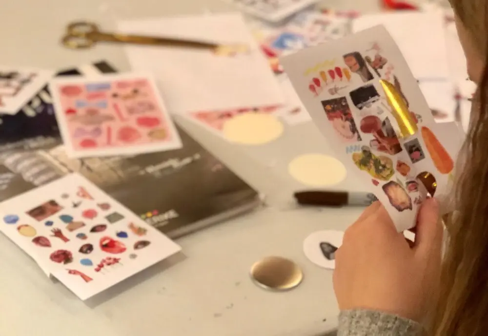 Kollasj og buttonsverksted (foto: Sandra Taranrød/Preus museum)