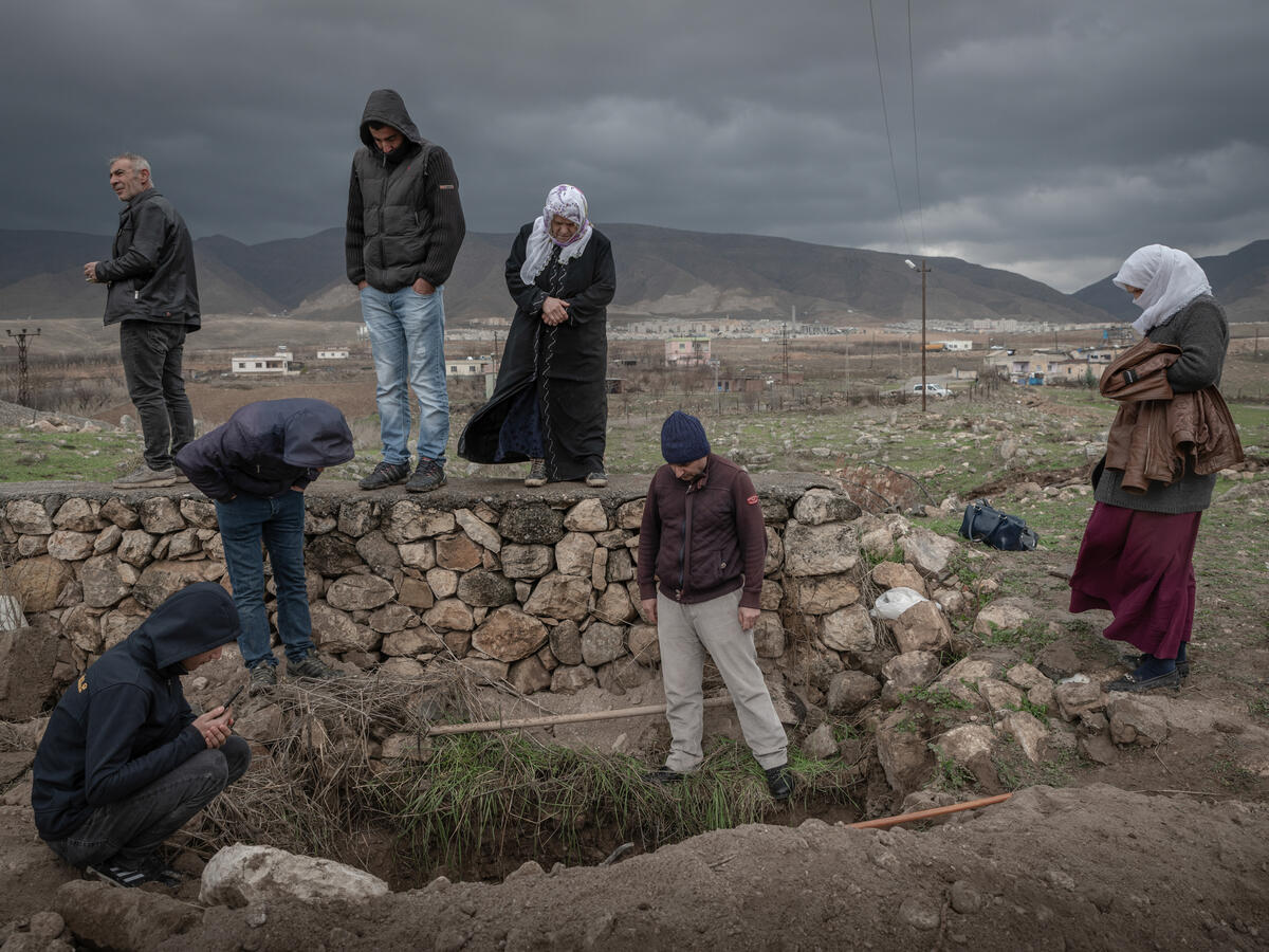© Mustafa Bilge Satkın, Drowned History, 2020. The exhumation of a man who died 50 years ago. The granddaughters and their sons are carefully watching as their grandfather HALIL’s grave is being opened. HALIL died 50 years ago. Two granddaughters’ sons only know HALIL through their mothers’ stories. The remains are moved as they have a spiritual value and so people do not forget their past. Although this process deepens people's agony, they do this to be able to show their ancestors' graves to future generations and to be able to visit them on special days. - 9/9