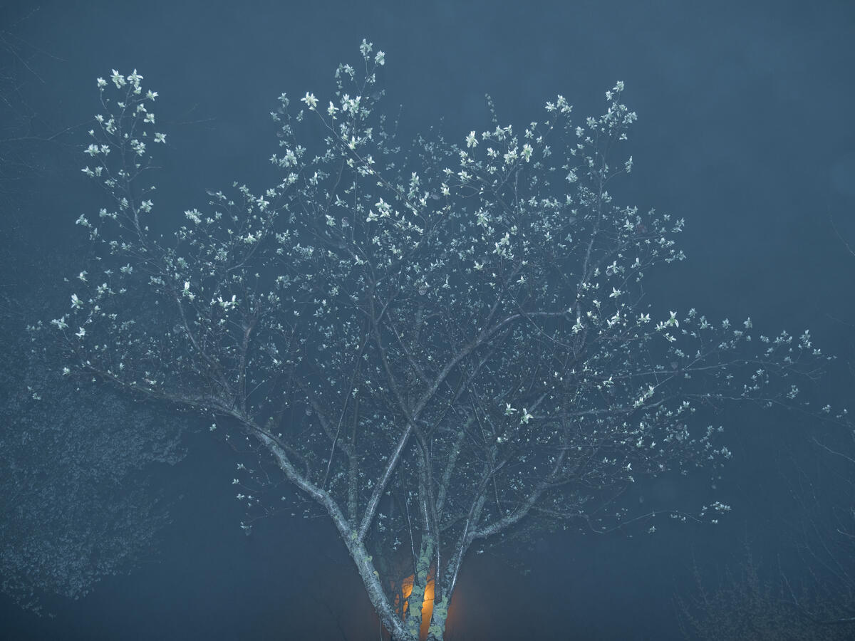 © Mustafa Bilge Satkın, Drowned History, 2020. As the waters continue to rise, some fruit trees that are not completely submerged greet spring with blooms. Nature is struggling to survive.
