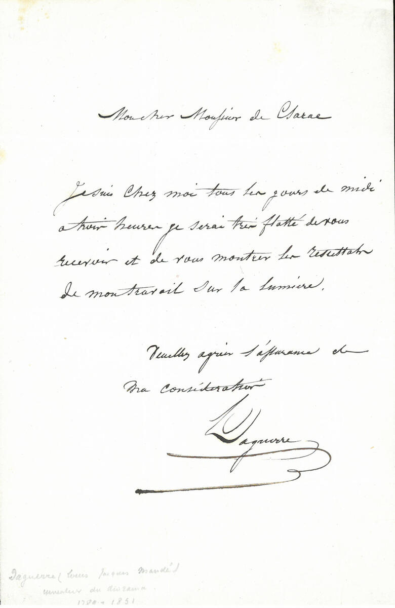 Undated letter from LouisJacques MandéDaguerre(1787–1851) to Herr Clarac. Preus Museum's collection.