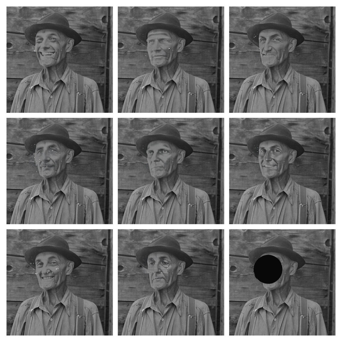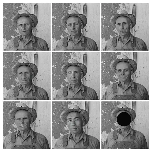 "We are at that point again; where technology will create a paradigm shift in the way that we communicate and consume media, calling into question ideas of “truth”. FSA was a heavily subjective documentary project, strictly controlled by its editor Roy Stryker who “killed” negatives with a hole punch if they did not suit the narrative. I used AI to “restore” the photographs, creating a series of “generations” that manipulate the image. The new versions become a composite of what the AI believes the photograph should look like based on my input."