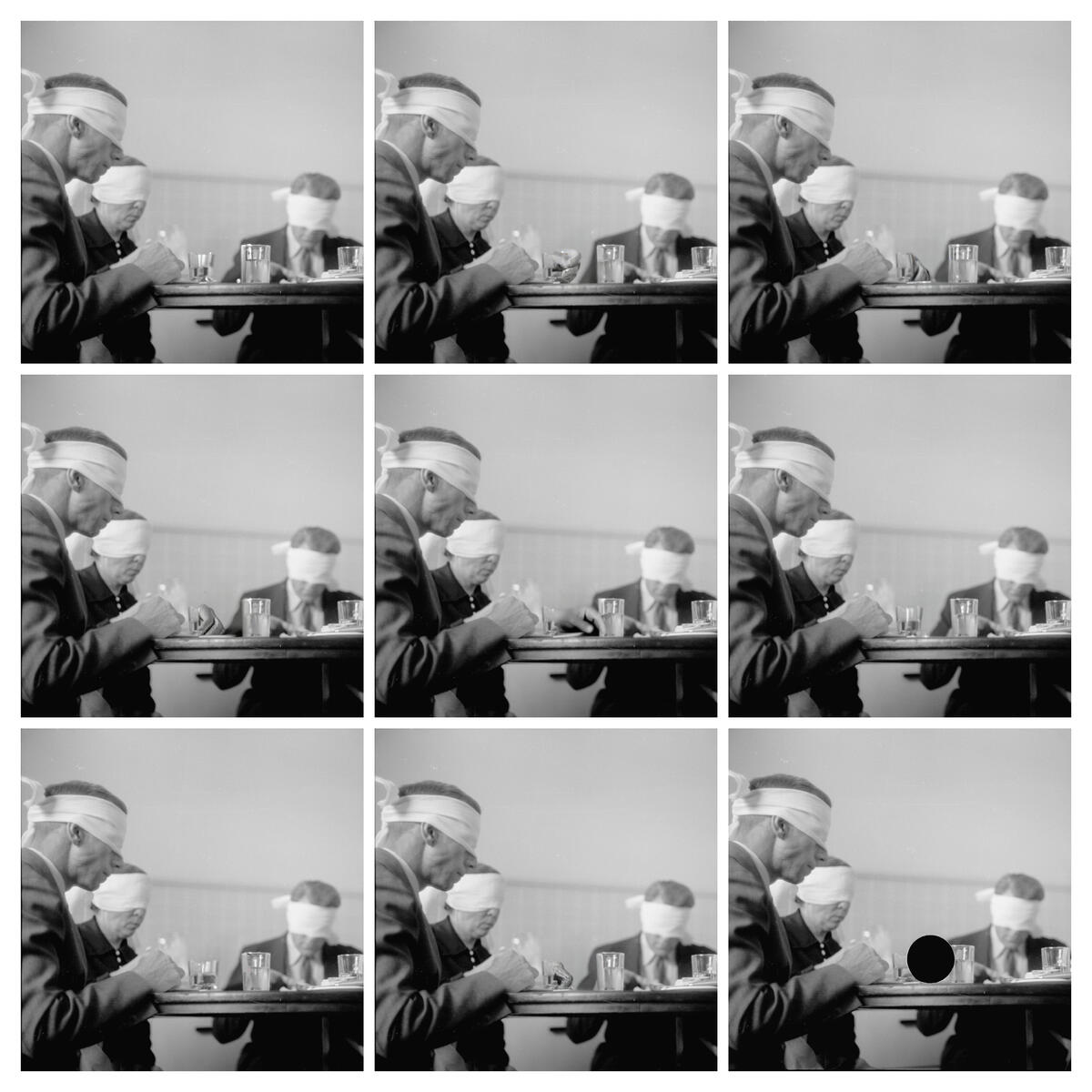 I used AI to ‘restore’ the photograph, creating a series of ‘generations’ that retouch the image drawing from a ‘composite’ of what the AI believes the photograph should look like based on my input. Each generation is imposed on the archive image subtly, and others not so subtle but each different from the next.