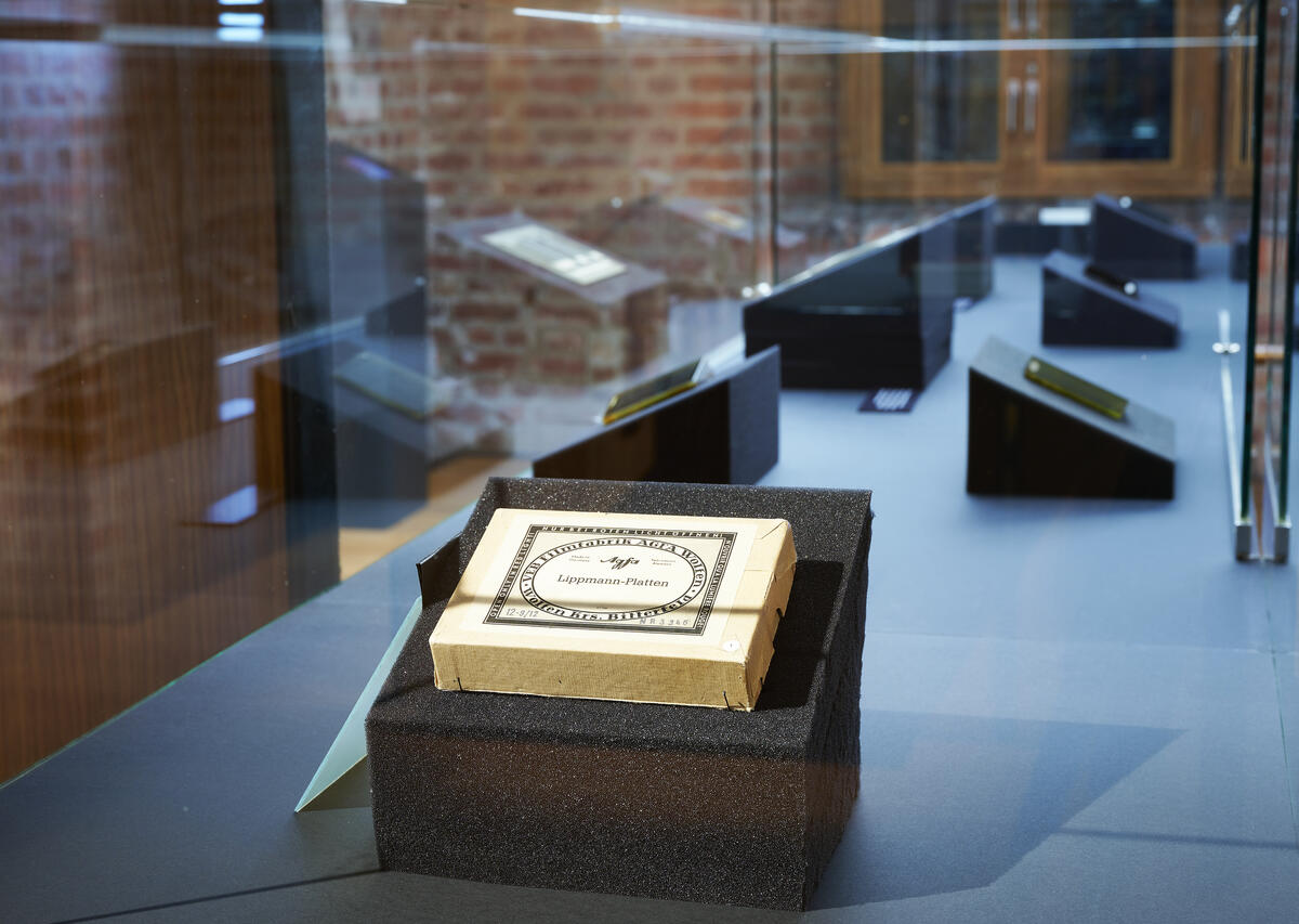 Visitors saw interferential images a century ago in museum exhibitions similar to this one. They compared them to "diamonds" and "jewels" thanks to their beauty, their use of transparent glass (and not paper), and the complex laboratory skills and knowledge of physics and chemistry needed to produce them. Nowadays, visually enjoying Neuhauss and Lehmann's "jewels" is still an experience like no other, allowing you to feel just how slow an image can be: Their brilliant colors will only reveal themselves to you from a certain angle. Their shades are shy and cannot be seen in a split second. At times, the glass becomes a mirror reflecting your own image back at you. In the entire world, there are less 500 interferential photographs.