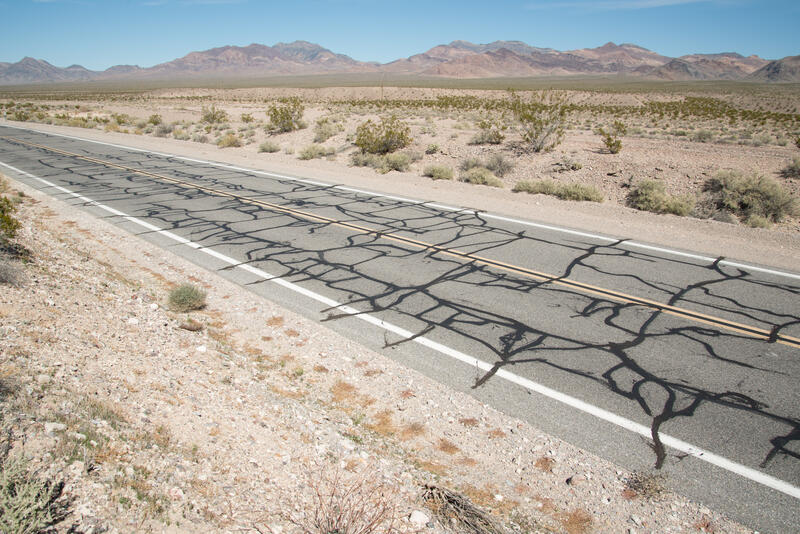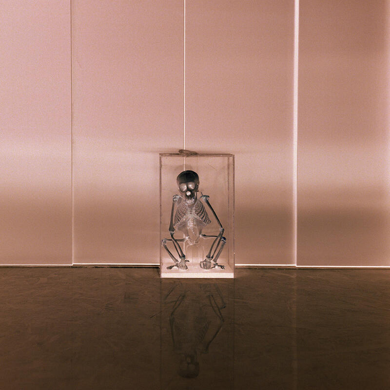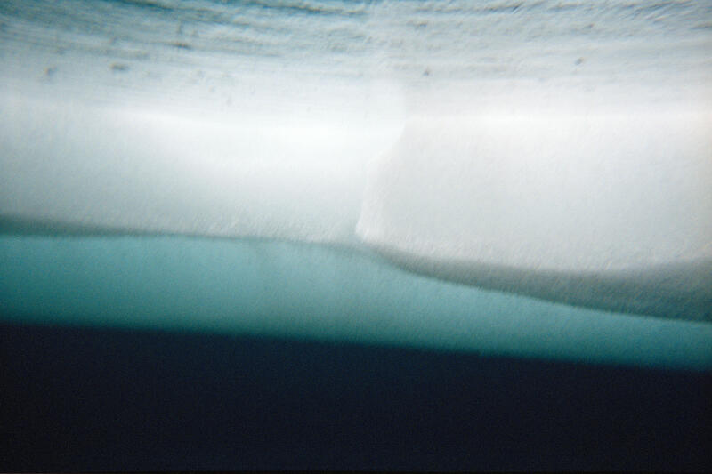 Åsne Eldøys temporære installasjon Utvikling (2017) består av et fotografi projisert på en vanntank som inneholder vann og et betonglandskap.