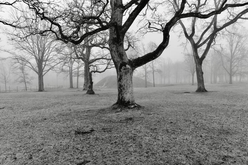 Fotografiet viser et vinterlandskap med en hvit flekk hvor fotografen har prøvd å fjerne, altså retusjere bort noen.