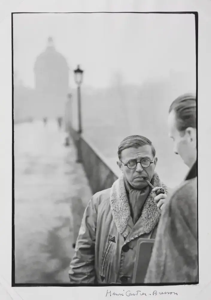 Henri Cartier-Bresson, Jean-Paul Sartre, Le Pont des Arts, Paris, 1946. Preus museums samling